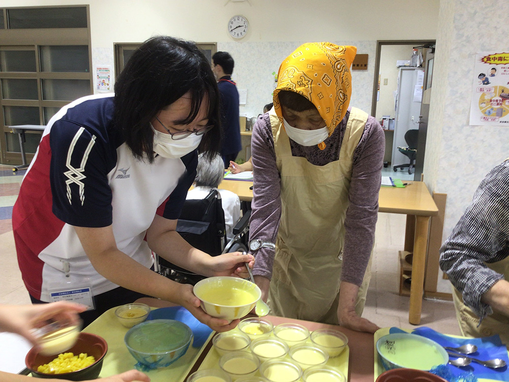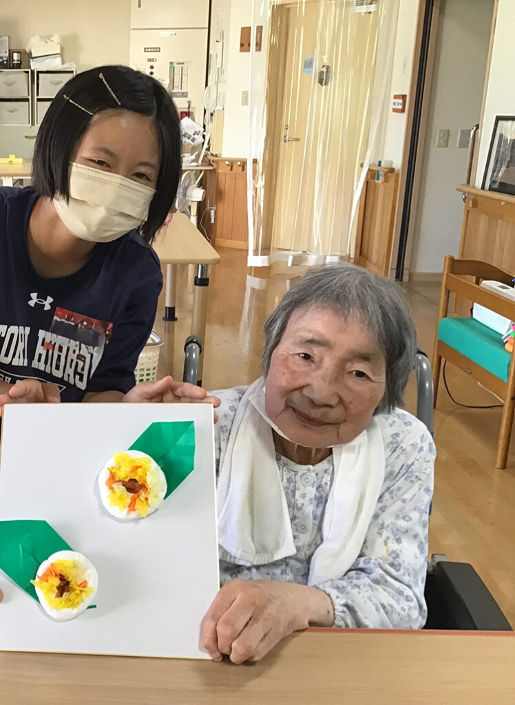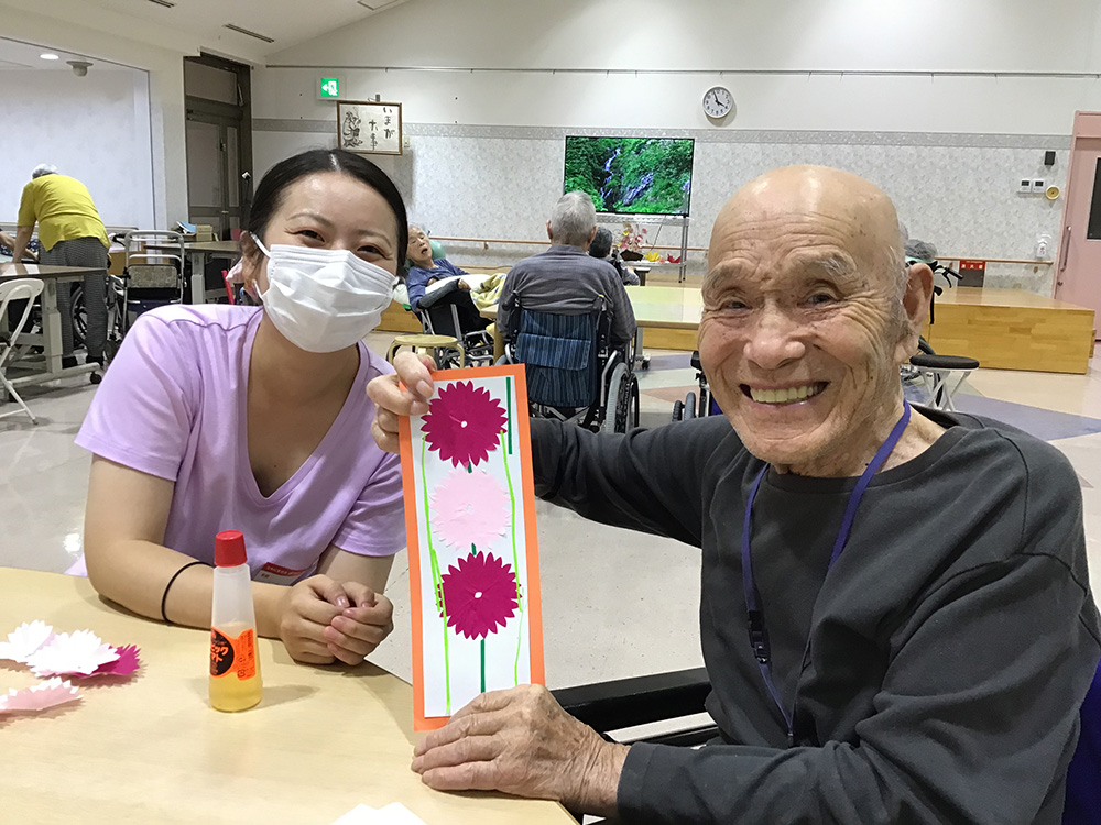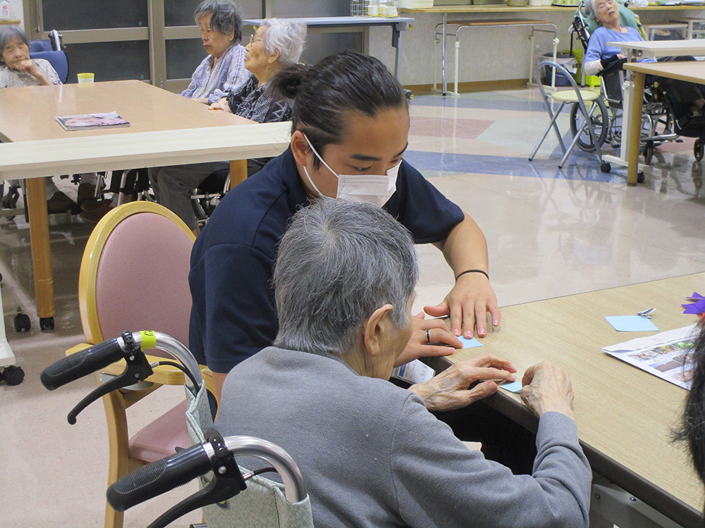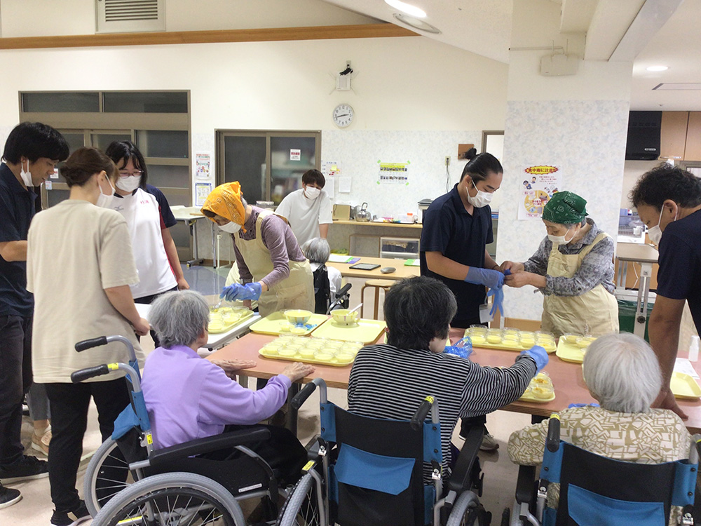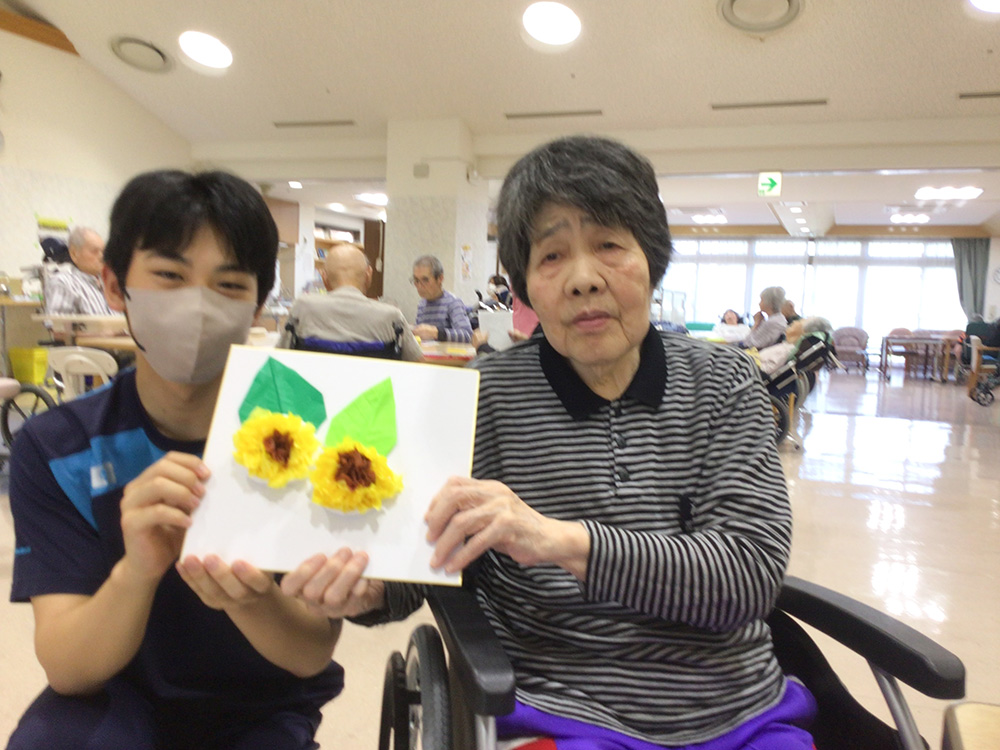 それぞれ利用者様との関りは初めてでしたが、声掛けも優しくでき利用者様の入浴後の髪を乾かしてくれたり、作品、おやつつくりを一緒にすることで利用者様からも「ありがとう」という声が聞かれました。