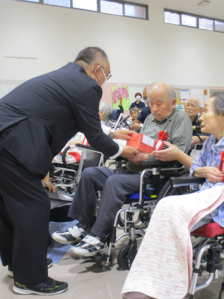 祝いの方おひとりおひとりにお祝状を読み上げ、記念品をお渡し家族様と一緒に写真撮影される嬉しそうな表情を職員一同見させていただきました。