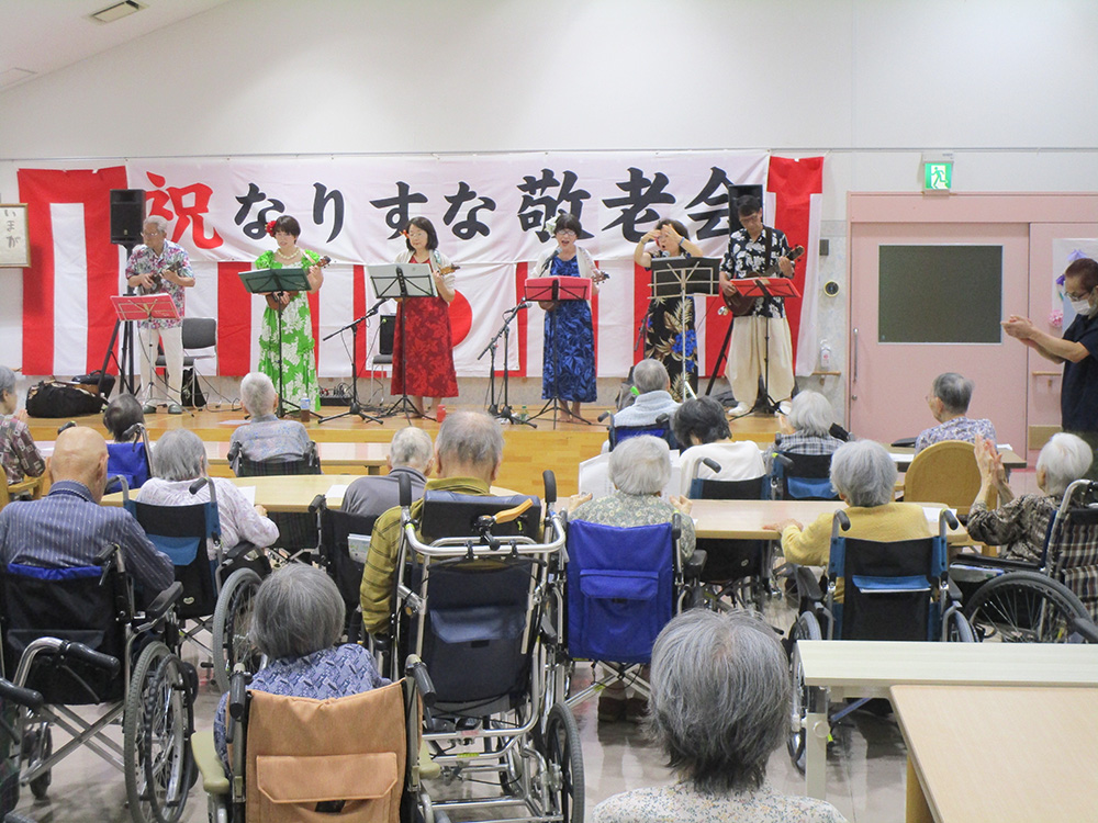 午後からは「ハッピーウクレレハーモニー」様にきていただき、ウクレレの音色に合わせて歌ってみたり、ダンスを観てたのしまれていました。