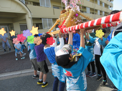 こどもたちは「わっしょい!わっしょい!」と神輿を担ぐ姿と元気な声がいっぱい!!私たちも元気をもらいました。