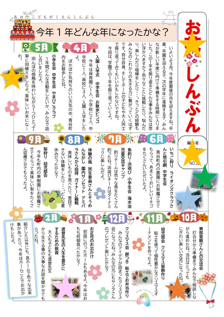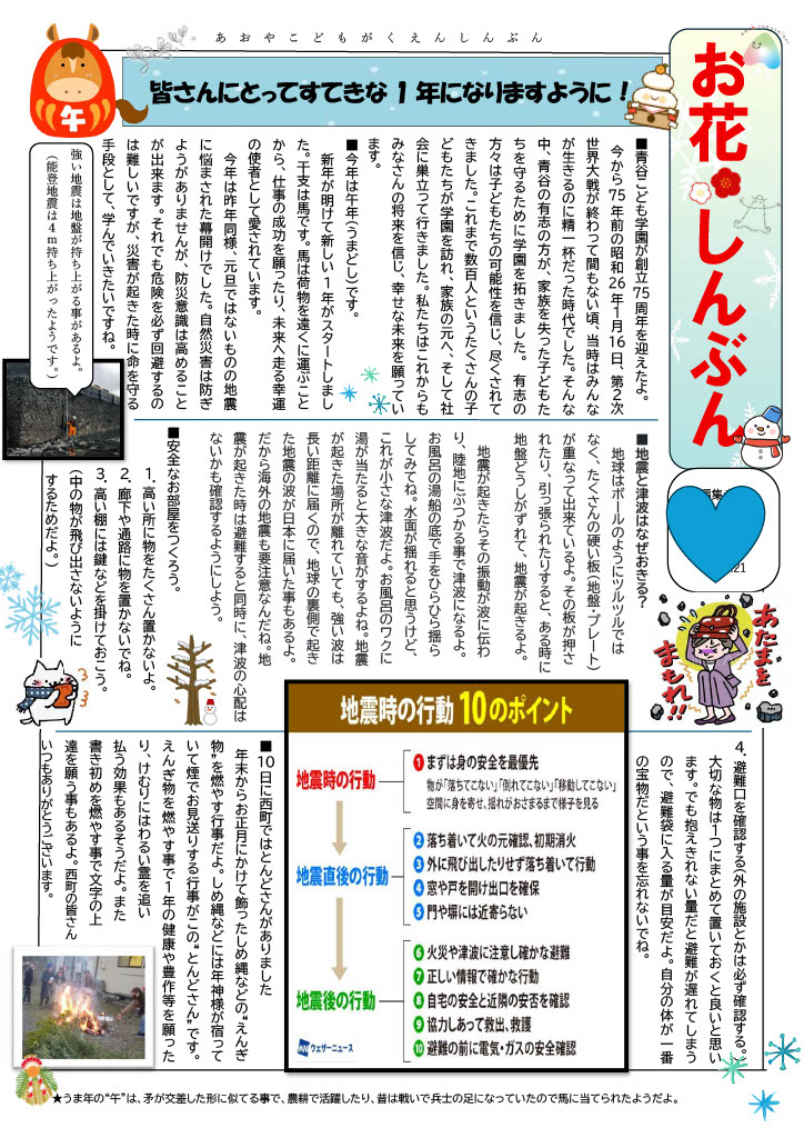 青谷こども学園 行事紹介 EVENT REPORT お花新聞1月号、2月号のご紹介✨ 2026/03/01 青谷こども学園 1月号と2月号をまとめてご紹介します! カテゴリー 青谷福祉会 (1) 特別養護老人ホーム (74) デイサービス (21) 青谷こども学園 (31)